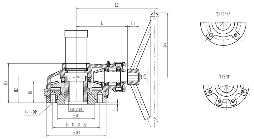 | TYPE | FLANGE SIZE | ΦD1 | P.C.D | ΦD3 | H | H1 | H2 | H3 | L2 | L | ||||||